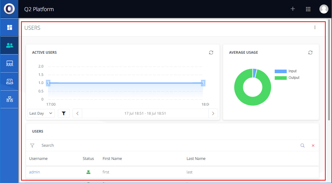 Clicking on the Profile picture of the button will navigate the user to the Profile page. Logout will log the active user out of Q2 Platform.