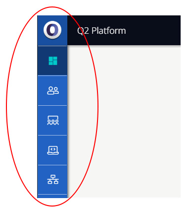 The Navigation Bar enables quick navigation to the main display sections within the Q2 Platform. Each area is described separately below.